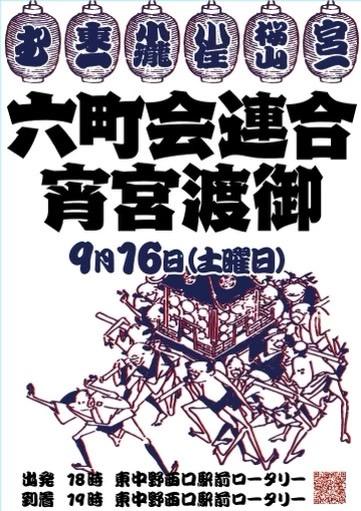 今年も中野氷川神社例大祭宵宮が開催されます。六町会連合のお神輿が、東中野駅周辺を華々しく渡御します。